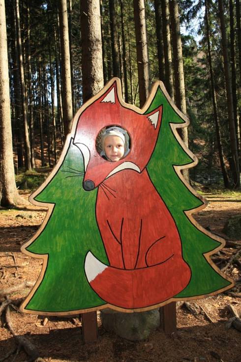 Po modré značce směřuji k Mumlavským vodopádům. Ještě před nimi se zastavuji u Liščí stezky, na které se děti seznamují se životem zrzavého tvora a zkouší některé z jeho dovedností. Na konci stezky se mohou za odměnu vyfotit v „liščím těle".
